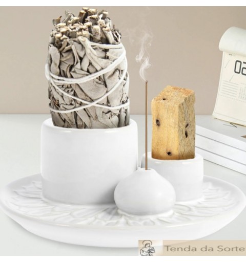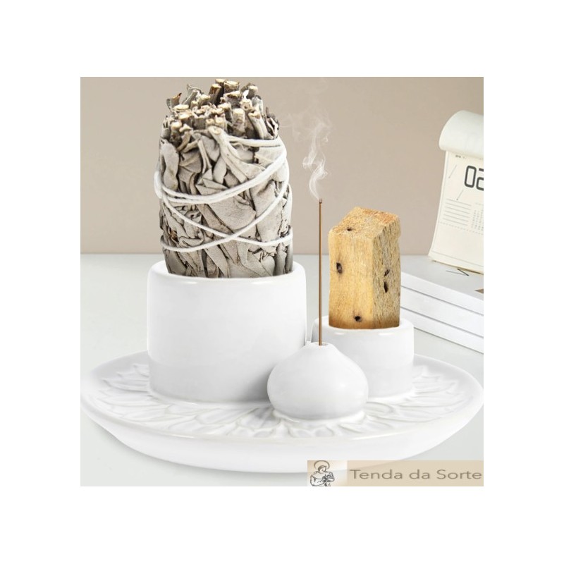 Peça com 3 espaços , ideal para colocar Tocha de Sálvia ( ou qualquer outra tocha), Pau Santo e Vareta de Incenso.