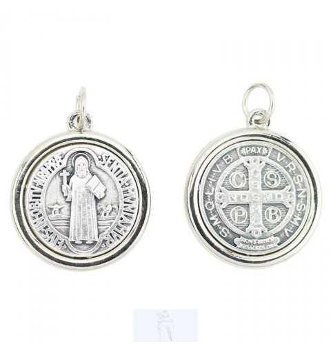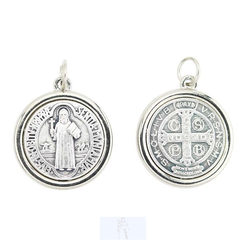 Medalha de são bento em metal prateado