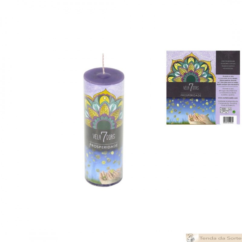 Vela dos 7 dias para atrair prosperidade financeira e fartura trazendo também sucesso para os negócios. Utilizada para pedir sucesso e equilíbrio.